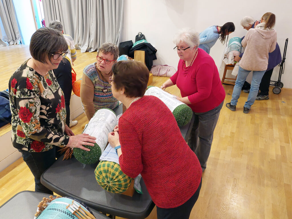 Skupna srečanja klekljaric so namenjena izmenjavi nasvetov in reševanju izzivov, ki se pojavijo med klekljanjem.